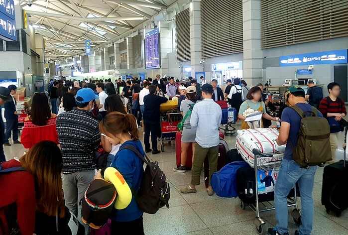 ▲지난 설 연휴 해외여행을 떠나는 인파로 인천국제공항이 북새통을 이뤘다. |
