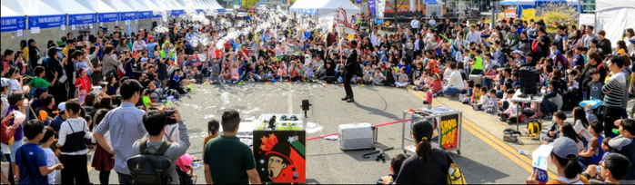 14일 오전에는 예술인과 함께 에코아트·창의예술 체험 및 발명 퀴즈왕 선발대회, 신나는창의발명한마당을 비롯해 이색자전거 타고 동네한바퀴, 버블쇼와 댄스릴레이(힙합, 재즈, 케이팝)등 가족 단위의 방문객들이 함께 어울리고 즐기는 프로그램으로 풍성했다.