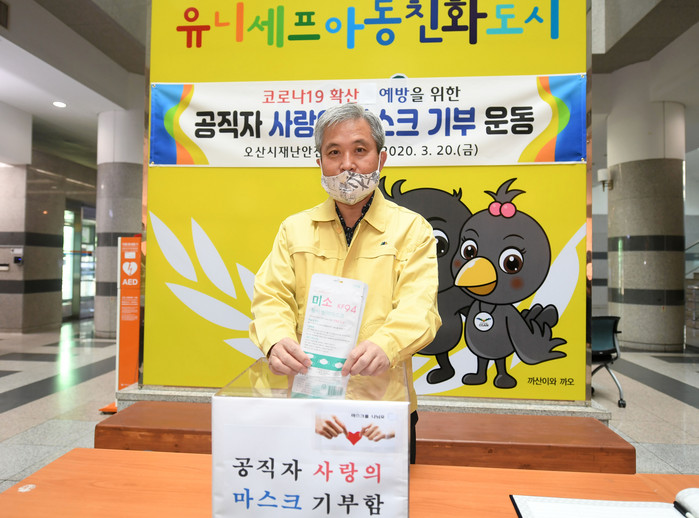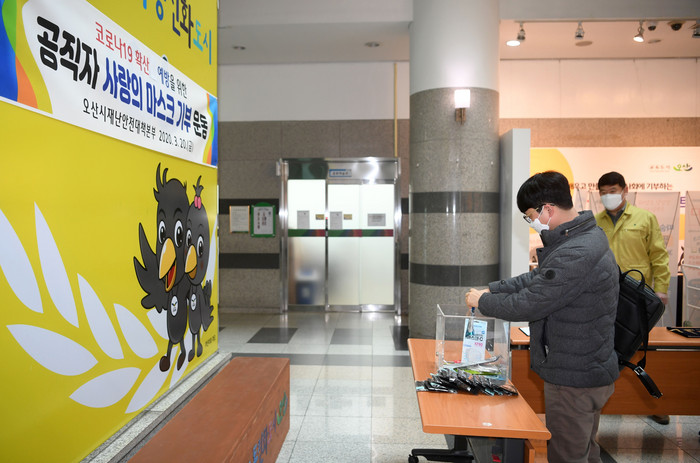 경기 오산시는 20일부터 코로나19 확산 예방을 위한 ‘공직자 사랑의 마스크 기부운동’을 추진한다고 밝혔다.
