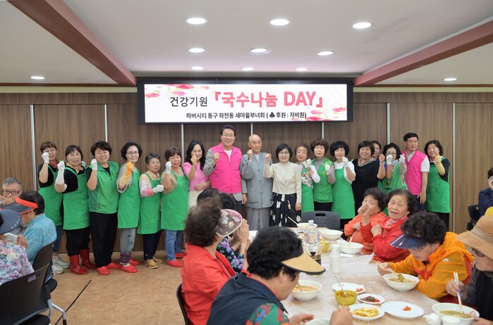 좌천동장(이영희)은 “오늘 관내의 어른들께 국수를 대접하며 소외되는 이웃이 없는 화목한 동네를 만드는 계기가 되었길 바란다.