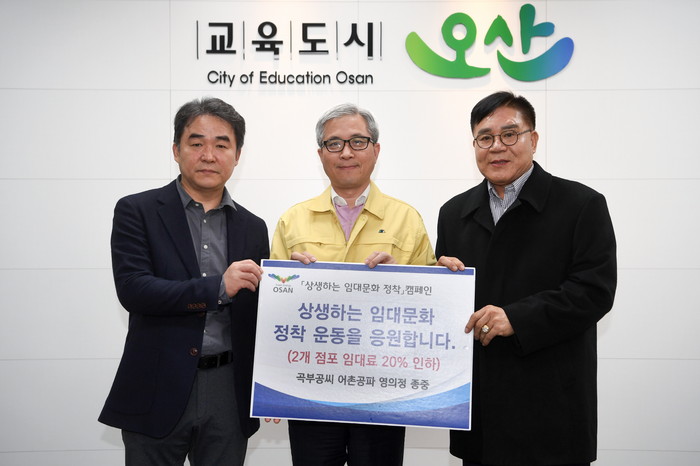 이에 곽상욱 오산시장은 “임대료 인하에 참여해주신 곡부공씨 종중 여러분께 진심으로 감사드리며, 여러분들의 따뜻한 마음이 어려움을 겪고 있는 자영업자와 소상공인에게 큰 위로가 되어줄 것이라 믿는다”고 말했다.