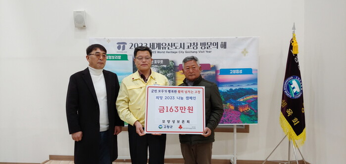 이번 기탁금은 지난 ‘2022 모양성 제야의 북소리’행사에 군민들의 소원을 담은 소원지 달기 행사를 운영하며 얻은 수익금으로 마련됐다.