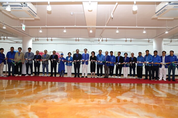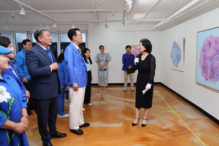 7월 31일까지 진행되는 이번 전시는 섬 수국축제를 찾는 관람객들에게 예술로 수국의 아름다움을 전하고자 기획됐다. 전시에 참여한 안해경 작가는 수국 꽃잎의 다채로운 색채를 원숙한 붓질로 그린 작품을 선보였다.