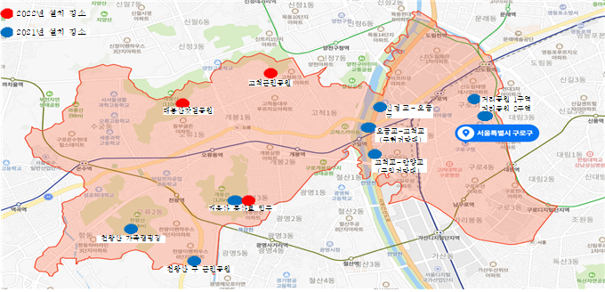 올해 새로 설치한 곳은 고척근린공원 화장실 주변, 매봉산 잣절공원 먼지털이기 옆, 개웅산 근린공원 등산로 입구 등 3곳이다.