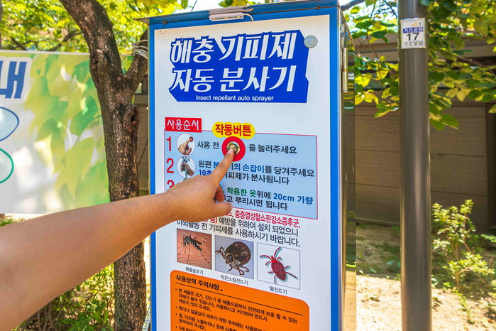 해충기피제 분사기는 11월까지 운영되며 해당 지점을 이용하는 주민이면 누구나 사용이 가능하다. 얼굴과 목을 제외한 겉옷, 돗자리 등에 뿌리면 3~4시간 동안 해충 접근을 막을 수 있다.