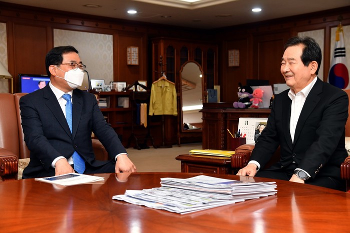 면담을 마친 정세균 국무총리는 허 시장의 주요 현안에 대한 깊은 공감을 표하며 긍정적으로 검토하겠다는 반응을 보였다는 후문이다.