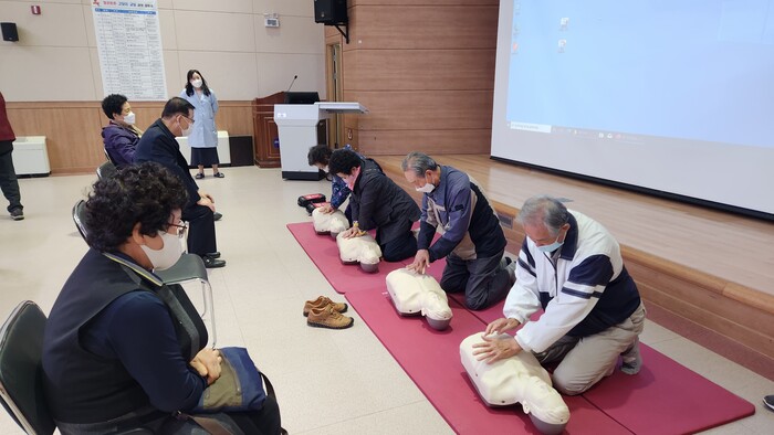 교육 내용은 ▲ 골든타임 4분의 중요성 ▲ 심폐소생술(CPR)의 방법 ▲ 자동심장충격기(AED) 사용방법 등 이론 교육과 실습용 마네킹, 교육용 자동심장충격기를 활용해 체험 위주의 교육으로 교육생들의 관심을 유도했다.