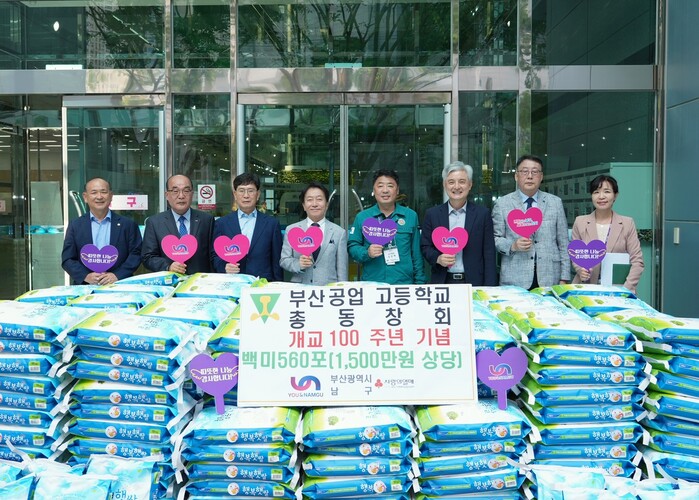학교는 지난 5월 5일 개교 100주년을 맞아 기념식, 축하연(부공인의 밤), 음약회(용광로 100년 환상곡) 행사를 진행하며 축하 화환 대신 쌀 화환으로 받은 쌀 560포를 부산 남구청(구청장 오은택)을 통해 지역주민에게 기부했다.