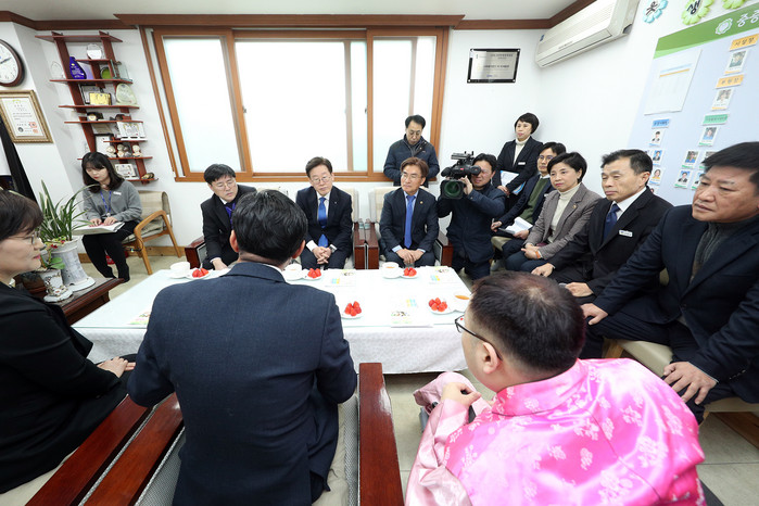 | ▲이재명 지사가 22일 설 명절을 앞두고 군포시 소재 장애인거주시설 ‘양지의집’(시설장 성치도)을 찾아 시설에서 생활하고 있는 장애인들과 새해 인사를 나누고 있다.(경기도 제공) |