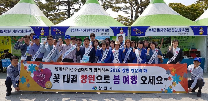 [로컬세계 권인진 기자]경남 창원시는 지난 28일부터 시작된 봄 여행주간을 맞아 30일 관광과 직원들이 타 지자체의 유명 축제장을 찾는 관광객들을 대상으로 창원의 특별한 봄 여행 프로그램을 알리는 ‘창원방문 캠페인’을 전개했다고 밝혔다.