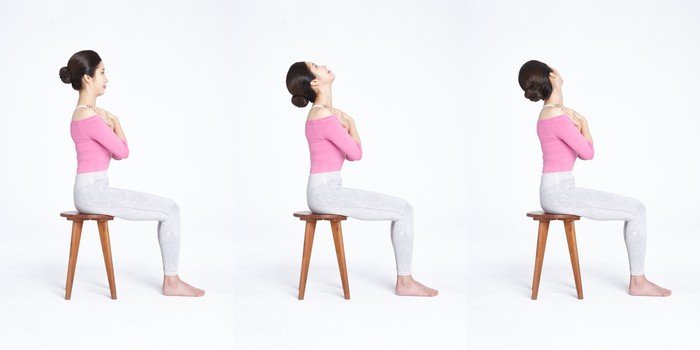 ▲일자목증후군 예방에 좋은 ‘쇄골 잡아 앞뒤 스트레칭’ |