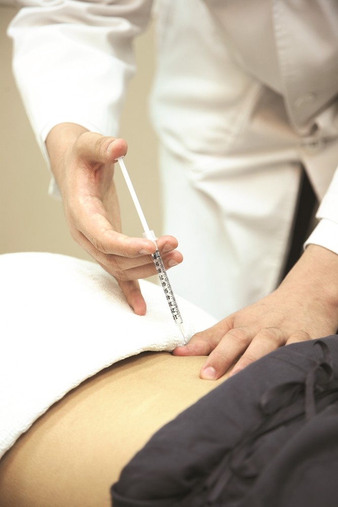 ▲의료진이 한 척추질환 환자에게 약침치료를 하고 있다. |