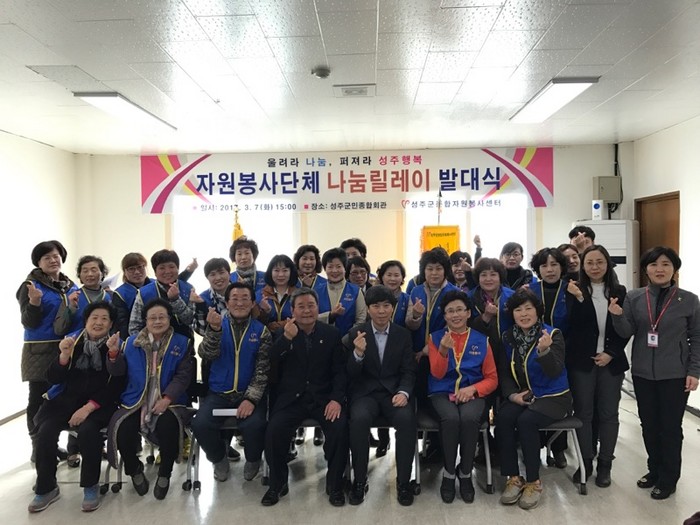 원봉사단체 나눔릴레이는 성주군에서 활동하는 자원봉사단체가 자원봉사활동을 실시한 후 다음 봉사활동 단체에 ‘자원봉사 릴레이 기’를 전달하는 방식으로 운영된다.