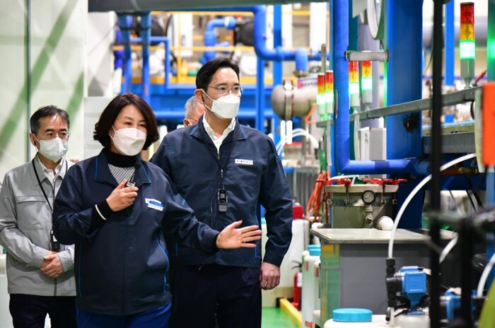 ▲ 삼성전자 이재용 회장이 스마트공장 현장을 방문한 장면. 삼성전자 제공 |