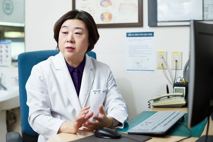 ▲ 강동경희대학교병원 한방내과 박정미 교수가 가슴 통증의 한방치료법에 대해 설명하고 있다. |