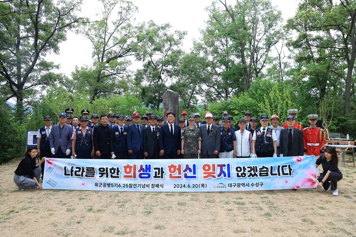 [로컬세계=박세환 기자] 대구 수성구는 지난 20일 6월 호국보훈의 달을 맞아 천을산 서편에 있는 육군공병5기 6·25참전기념비를 참배했다.
