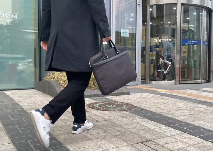▲한 직장인이 출근길 1km 걷기 운동을 실천하고 있다 |