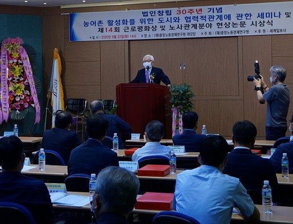 중노경연은 재단법인 설립 30주년을 맞아 ‘도·농 상생’의 일환으로 ‘농어촌 활성화를 위한 도시와 협력적 관계’라는 주제의 세미나를 지난 22일 중노경연 용인연수원에서 개최했다.