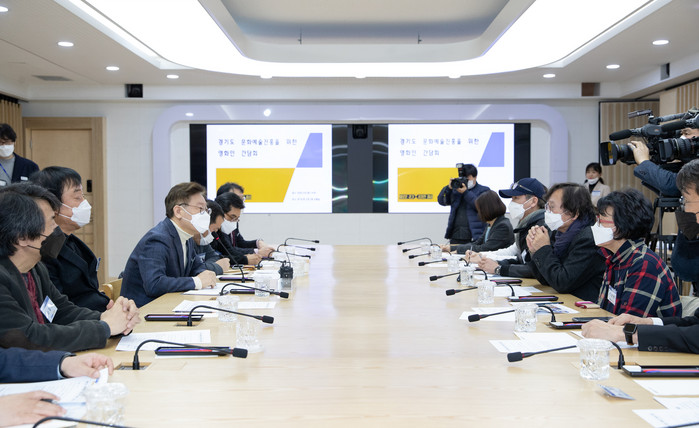 이 지사는 5일 경기도청 상황실에서 영화분야 관계자들과 함께 경기도 문화예술 진흥을 위한 영화인 간담회를 개최했다.