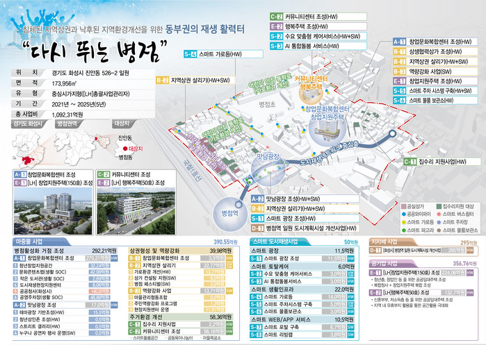 이에 시는 ‘다시 뛰는 병점’을 주제로 한국토지주택공사, 도시재생지원센터, 주민 등과 함께 창업문화복합센터 조성부터 △침체된 상권회복 △주거환경개선 △스마트 기술 도입 △공기업과 협업한 공공주택 확충 사업 등을 추진할 계획이다.