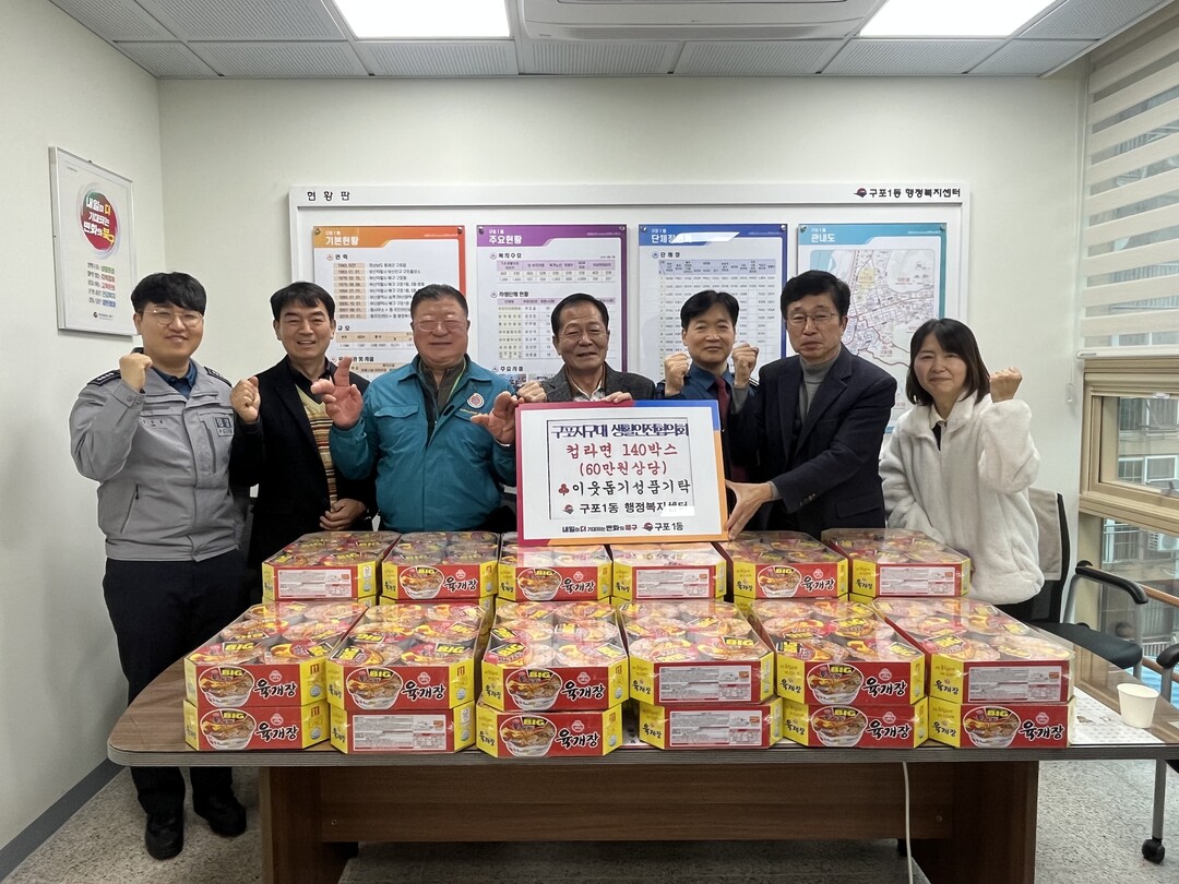 [로컬세계 = 김의준 기자] 부산 북구 구포1동 행정복지센터는 지난 19일 구포지구대 생활안전협의회가 저소득 취약계층을 위해 컵라면 140개를 기탁했다고 23일 밝혔다.
