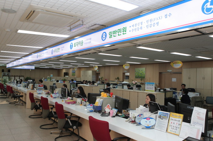 이번 봄단장은 창가마다 생동감 넘치는 생화를 놓았다. 관공서의 경직되고 딱딱한 느낌과 이미지를 탈피하고 친근감과 신뢰감을 주기위해 단정한 칼라 티셔츠를 착용해 부드럽고 편안한 분위기로 민원인을 가족처럼 맞이하고 있다.