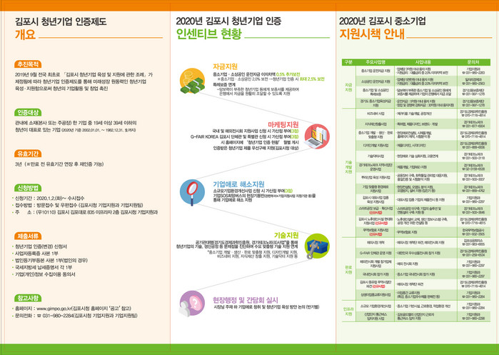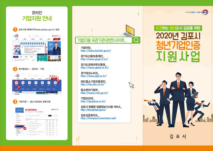 | ▲김포시 청년기업인증 지원사업 홍보 리플릿.(김포시 제공) |