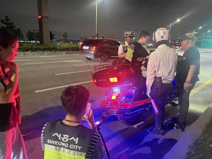 ▲오토바이 소음 불법 개조 합동단속 장면. 시흥시 제공 |