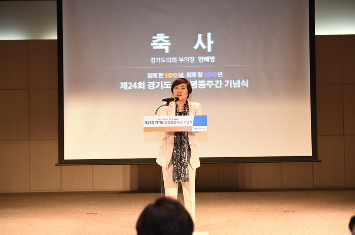 마지막으로 안부의장은 “성평등 사회를 실현하기 위해서는 좀 더 과감한 정책적 지원과 시대에 맞는 제도개선이 필요하다”고 말하며, “경기도의회는 도민 모두가 평등하고 행복한 삶을 누릴 수 있는 경기도를 위해 여성의 대표성을 강화하고, 공공부문의 유리천장 깨기가 민간에까지 확산될 수 있도록 노력하겠다”고 덧붙였다.