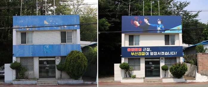 | ▲홍보물 설치 전과 후.(금정경찰서 제공) |