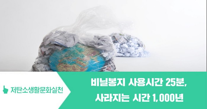 환경부에 따르면 2015년 기준 1인당 연간 비닐봉지 사용량은 약 414개로 굉장히 높은 수치이다. 이에 법령을 개정해 대형마트 등 대규모점포와 165㎡ 이상 슈퍼마켓에서는 1회용 비닐봉투 사용을 금지시켰다.