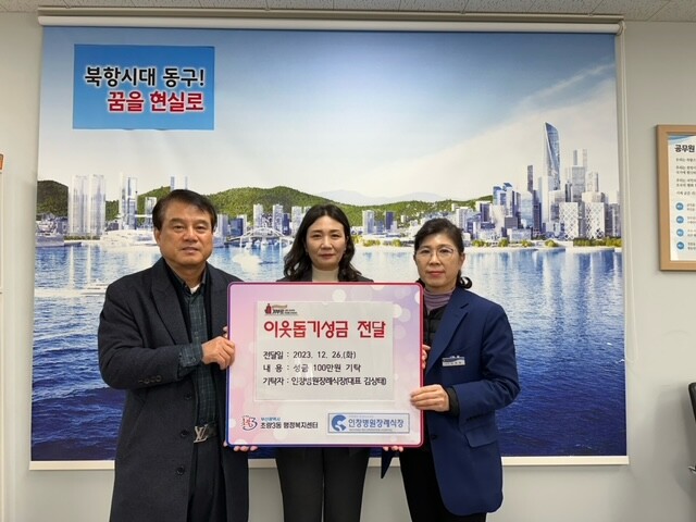 [로컬세계 부산=맹화찬 기자]부산 동구(구청장 김진홍) 초량3동행정복지센터는 26일 인창병원장례식장에서 희망2024나눔캠페인 성금 100만원을 기탁했다고 밝혔다.