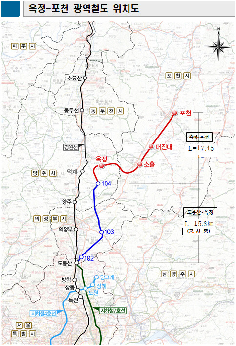 총연장 17.45㎞의 옥정~포천선은 지난해 12월 2공구 착공에 들어간 도봉산~옥정 연결사업 종점에서 옥정신도시를 통과해 포천까지 연장하는 사업이다.