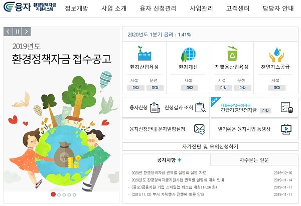 | ▲환경정책자금 지원시스템(loan.keiti.re.kr) 메인 화면. |