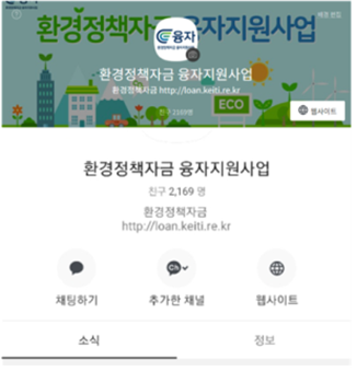 이와 함께 ‘카카오톡플러스친구’에서 ‘환경정책자금 융자지원사업’을 친구 추가하면 환경정책자금 신청·접수기간, 사업완료보고, 금융지원사업 각종 행사 등 최신 정보를 받아 볼 수 있다.