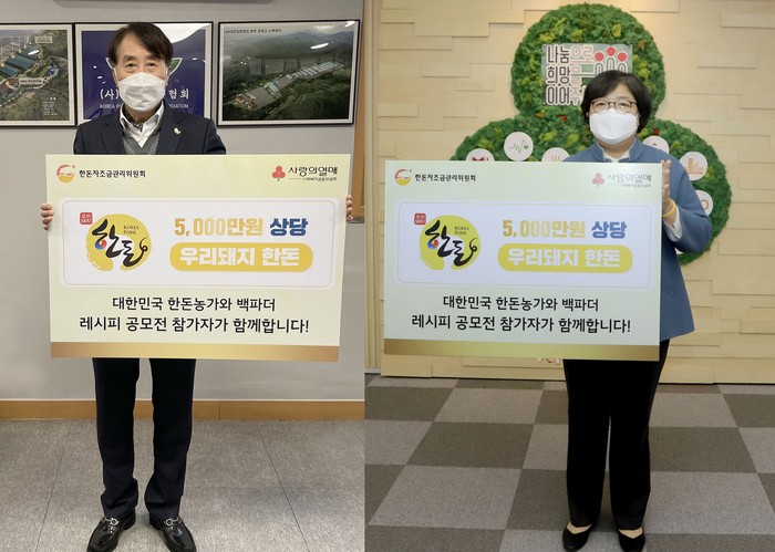 한돈자조금관리위원회(이하 한돈자조금)는 23일 사랑의열매에 한돈을 전달하며 ‘한돈X백파더 돼지고기 레시피 공모전’ 기부 공약을 이행했다.