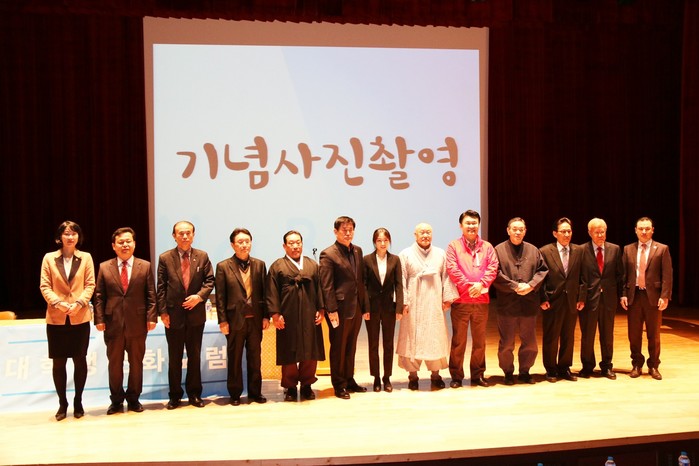 ▲지난 3일 대전서구문화원에서 열린 제3회 대학생 문화포럼에서 내빈들이 기념촬영을 하고 있다. |