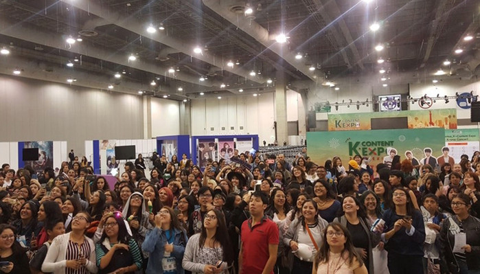 ▲지난 25~26일 멕시코 센트로 시티바나멕스에서 개최된 ‘2019 멕시코 K-콘텐츠 엑스포’를 찾은 현지 관람객들이 무대 이벤트를 즐기고 있다. |