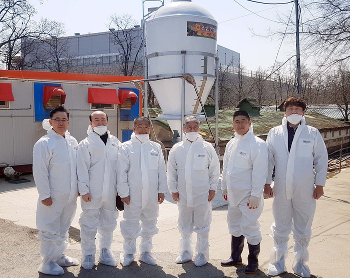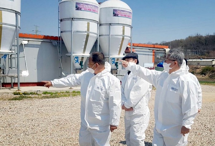| ▲농협중앙회 이대엽 서울지역본부장(오른쪽 첫번째)과 서울경기양돈농협 이정배 조합장(왼쪽 첫번째) 등은 9일 경기도 화성시에 소재한 양돈농가에 방문하여 아프리카돼지열병(ASF) 방역활동에 동참했다. |