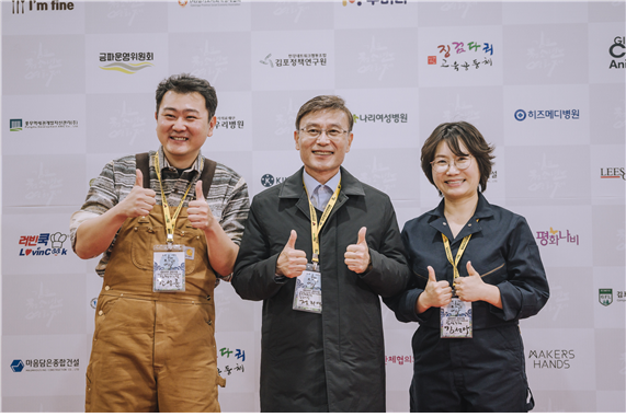 | ▲왼쪽부터 집행위원장 조성륜, 조직위원장 정하영(김포시장), 집행위원 김선아(사진제공=김포청소년영화제조직위원회) |
