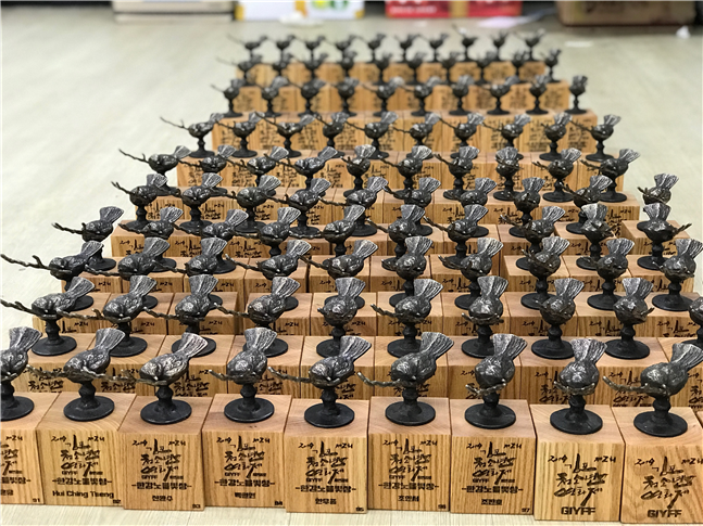 | ▲시민운영위원회의 손으로 직접 만든 트로피, 모든 제작과정을 실시간으로 SNS에 공개했다.(사진제공=김포청소년영화제조직위원회) |