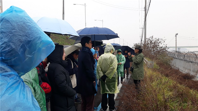 | ▲(사)한국야생조류보호협회 윤순영 이사장이 김포청소년영화제 개막식에 참석한 영화인들과 함께 김포 곳곳의 희귀야생조류 서식지에 찾아가 대해 김포의 생태자연환경에 대해 설명하고 있다.(사진제공=김포청소년영화제조직위원회) |