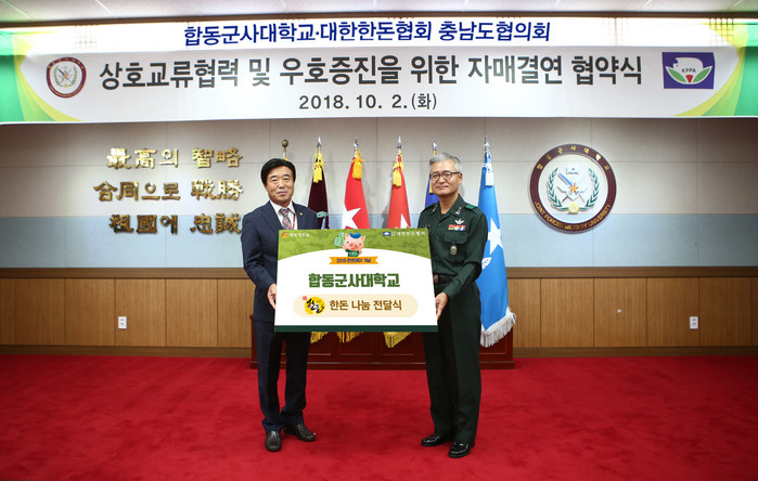 한돈자조금은 충남지역을 대표해 합동군사대학교에 한돈으로 감사한 마음을 전했다. 군부대 한돈 나눔 전달식은 1001 한돈데이와 국군의 날을 맞이해 전국적으로 릴레이로 진행 중이다.