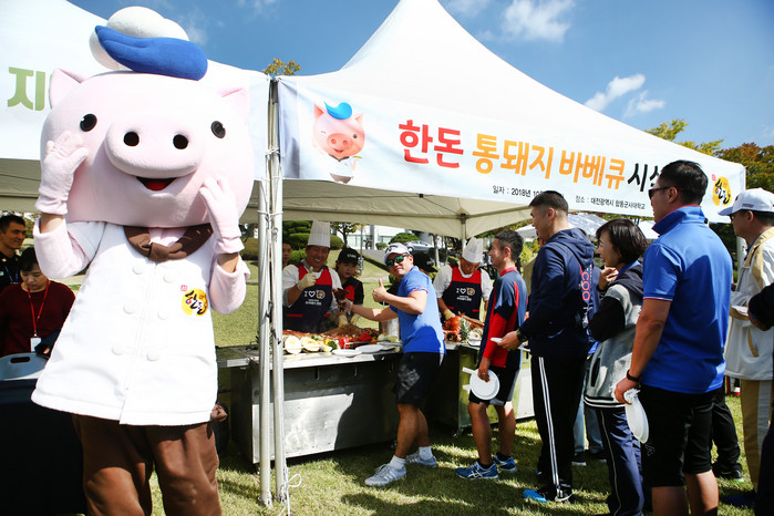 합동군사대학교에서는 같은 날 체육대회를 열어 장병들의 허기진 배를 맛있는 한돈 시식회로 채울 수 있었다. 이 외 ‘한돈 먹고! 기왓장 격파’ 이벤트를 통해 군 장병들에게 다양한 경품을 제공하는 등 이 날 체육대회를 즐기는 장병들에게 한 층 더 재미있는 시간을 선사했다.