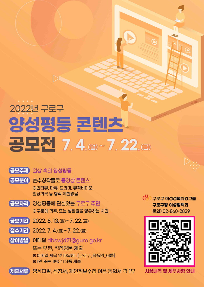 [로컬세계 = 임종환 기자]서울 구로구가 양성평등 문화에 대한 인식 제고와 공감대 확산을 위한 ‘양성평등 콘텐츠 공모전’을 개최한다.