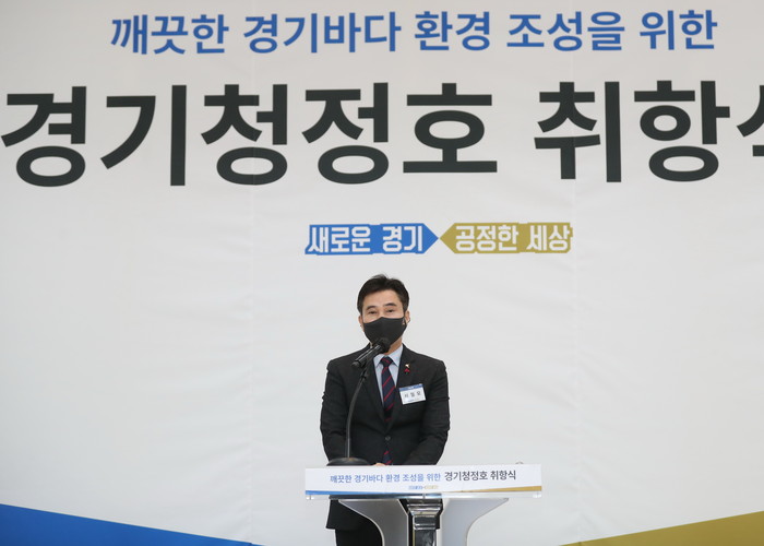 이날 취항한 경기청정호는 앞으로 전곡항에 설치된 부잔교에 계류하며, 연 2 톤 규모의 바다쓰레기를 수거할 예정이다.
