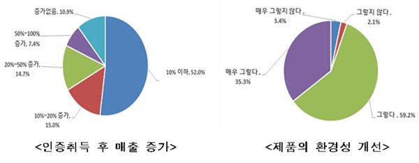 또한 기업들은 환경표지 인증에 따른 주요 성과로서 △제품의 환경성 개선(94.5%) △고객과의 관계 개선(93.8%) △기업 이미지 향상(93.7%)을 높게 평가했다.