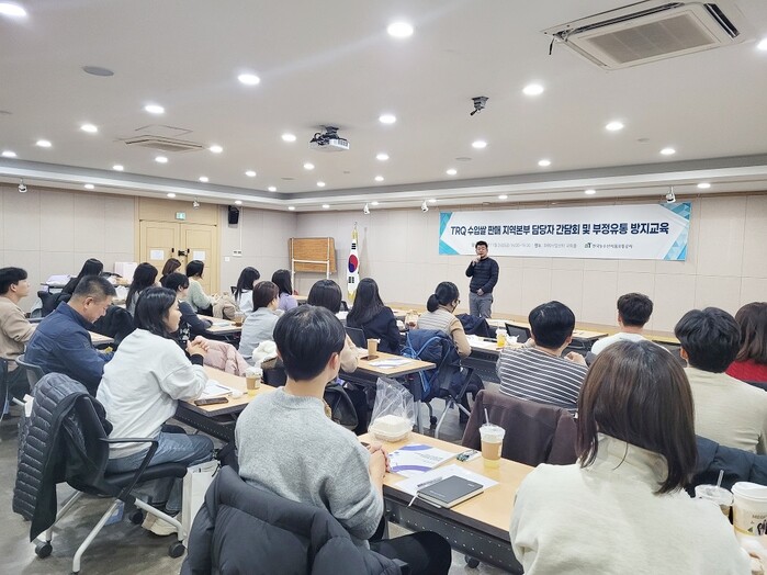 ▲ 2023년 TRQ 수입쌀 부정유통 방지교육 현장 모습. aT 제공 |