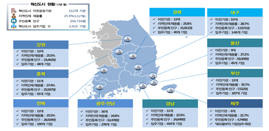 이에 국토부는 혁신도시 클러스터 활성화, 입주기업 인센티브 확대, 정주여건 개선, 산학연 협력 생태계 구축 등을 주요내용으로 하는 ‘혁신도시 지역경제 거점화 전략’을 추진 중이다.