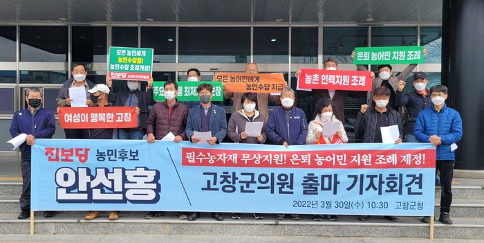 제8회 전국동시지방선거에 고창군 기초의원으로서는 처음으로 진보당 고창지역위원회 농민후보 안선홍후보가 민주당 텃밭 전북 고창군 기초의원 선거에 도전장을 던졌다.